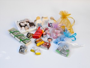 Chocolates personalizados tipo bocado (tamaño aprox 3,5 cms. de ancho x 2,5 cms. de largo 1,2 cms. de alto) con Etiqueta impresa a color